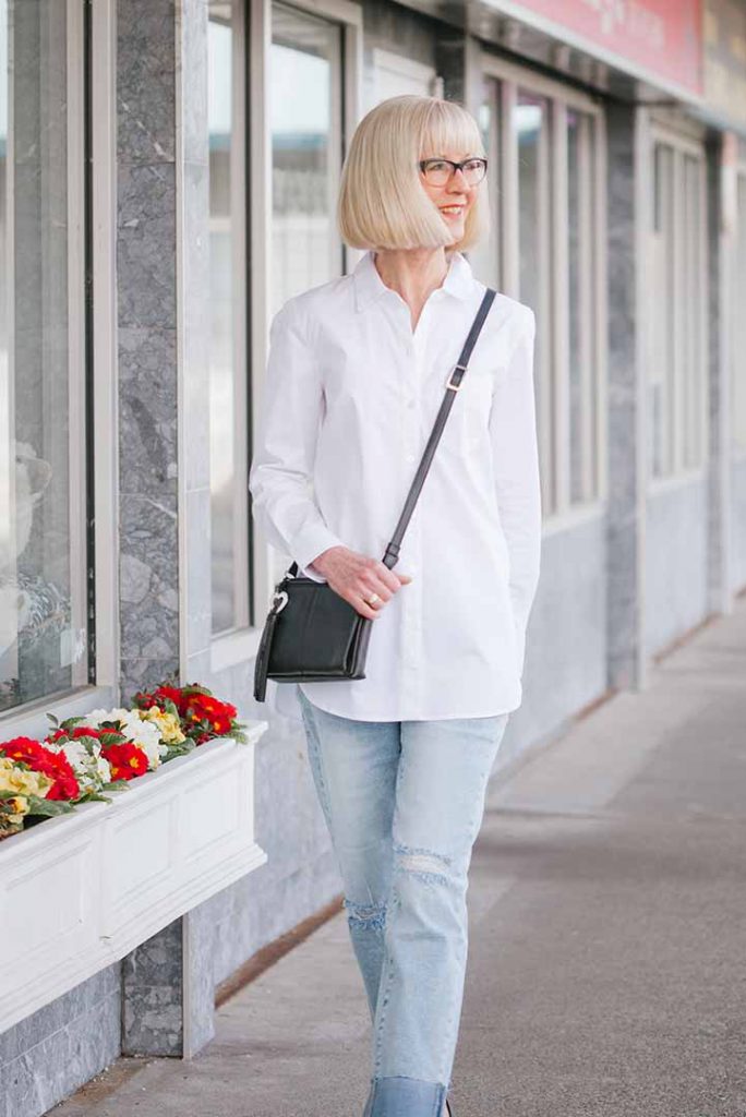 A white button up shirt can be worn as a layering piece under a sweater or stand on its own to dress up your jeans or dress pants.  It can also be worn as a coverup with a cami underneath…many options once more for different occasions.  Dress up for your zoom or throw it on for a beach cover up!